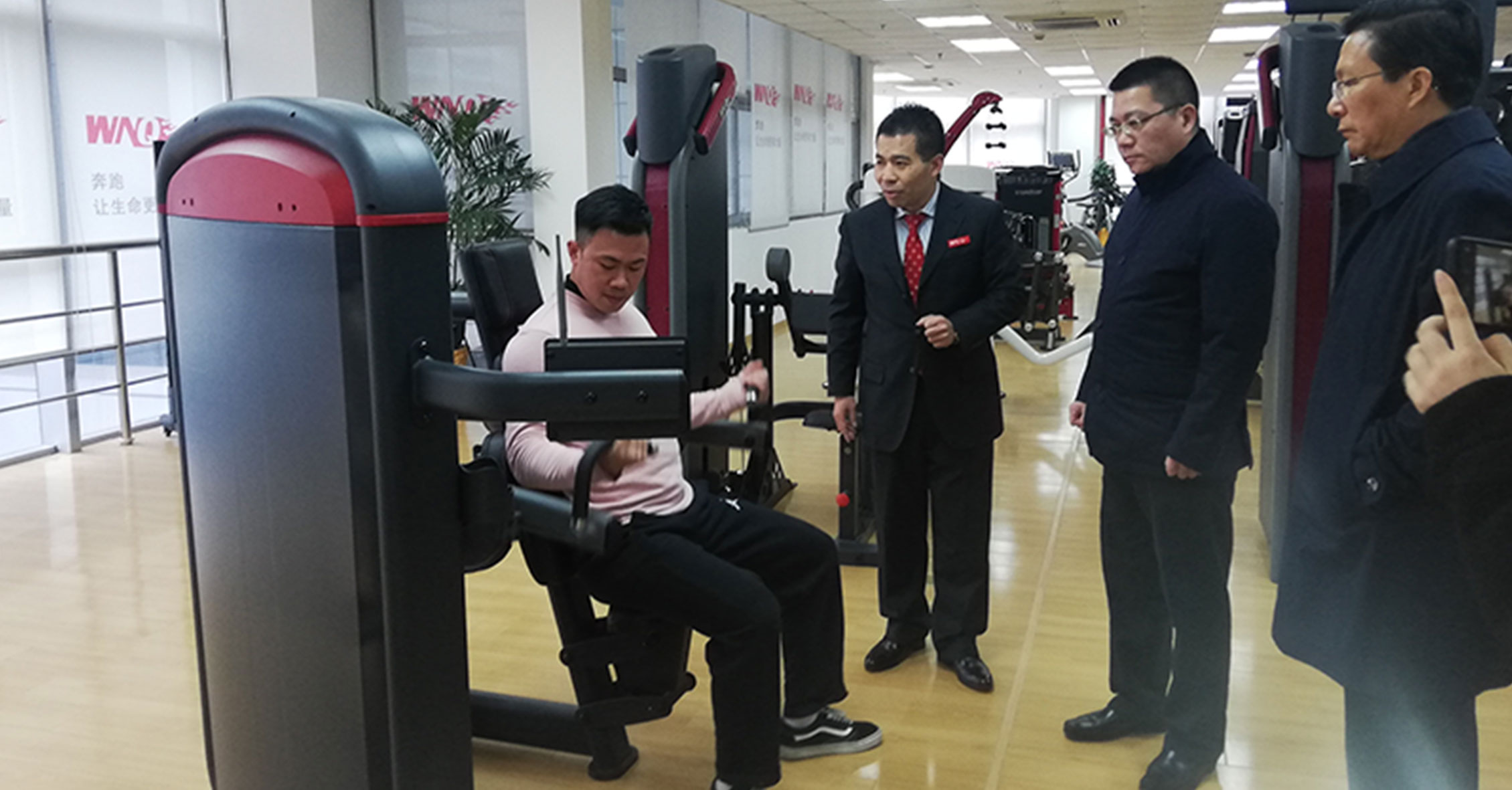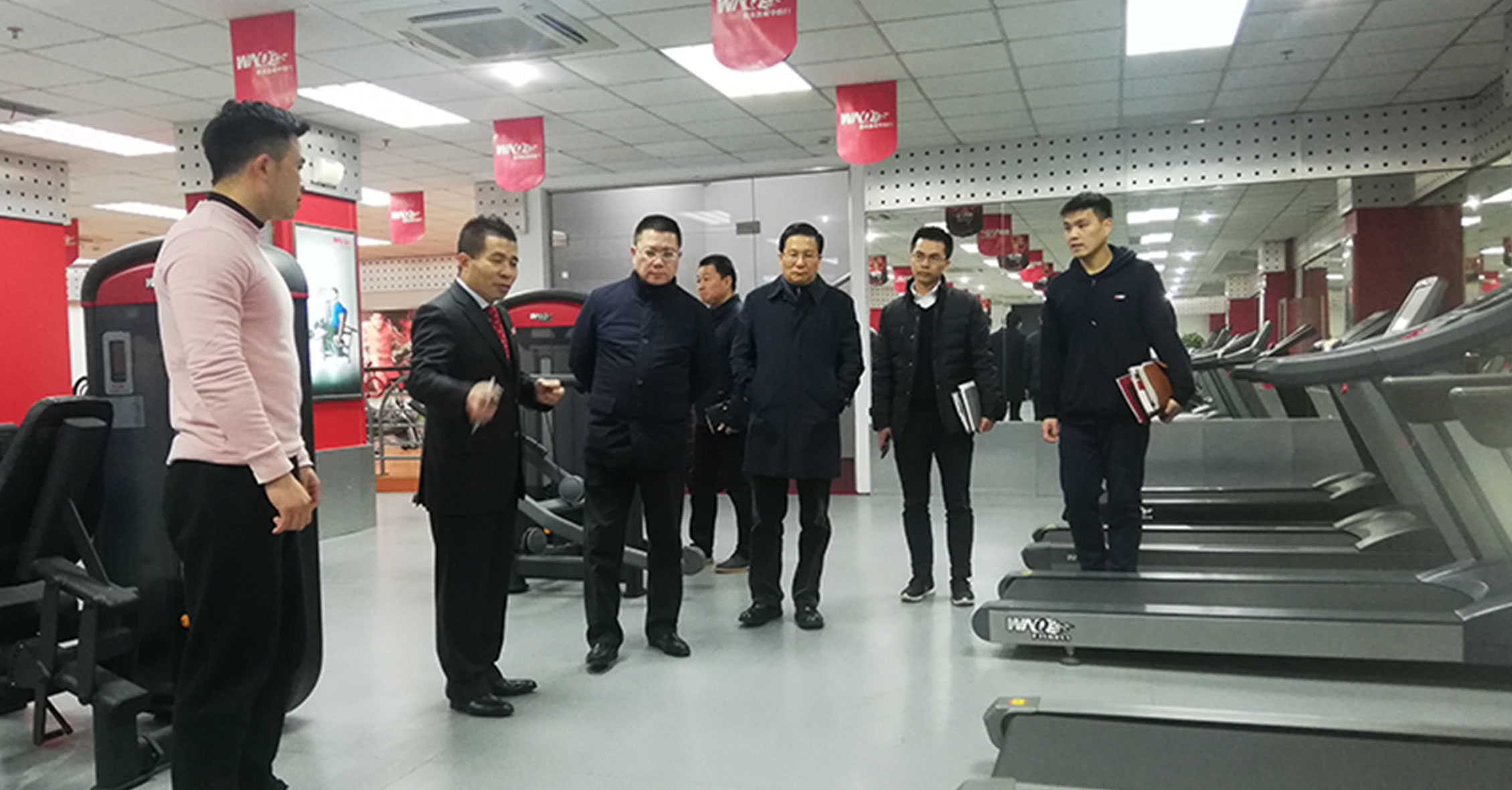 许副局长一行先参观了hth.com华体会器材展厅,对我们的企业文化、发展情况、健身器材产品等进行了详细了解,并重点关注了2018年hth.com华体会推出的F1-7000美格力量单站系列、W2000变形金刚系列和F4、F6跑步机等新品,hth.com华体会的力量单站产品大管径的优质选材、源自美国的外形设计和新品跑步机的智能化等特点深得领导一行的肯定。